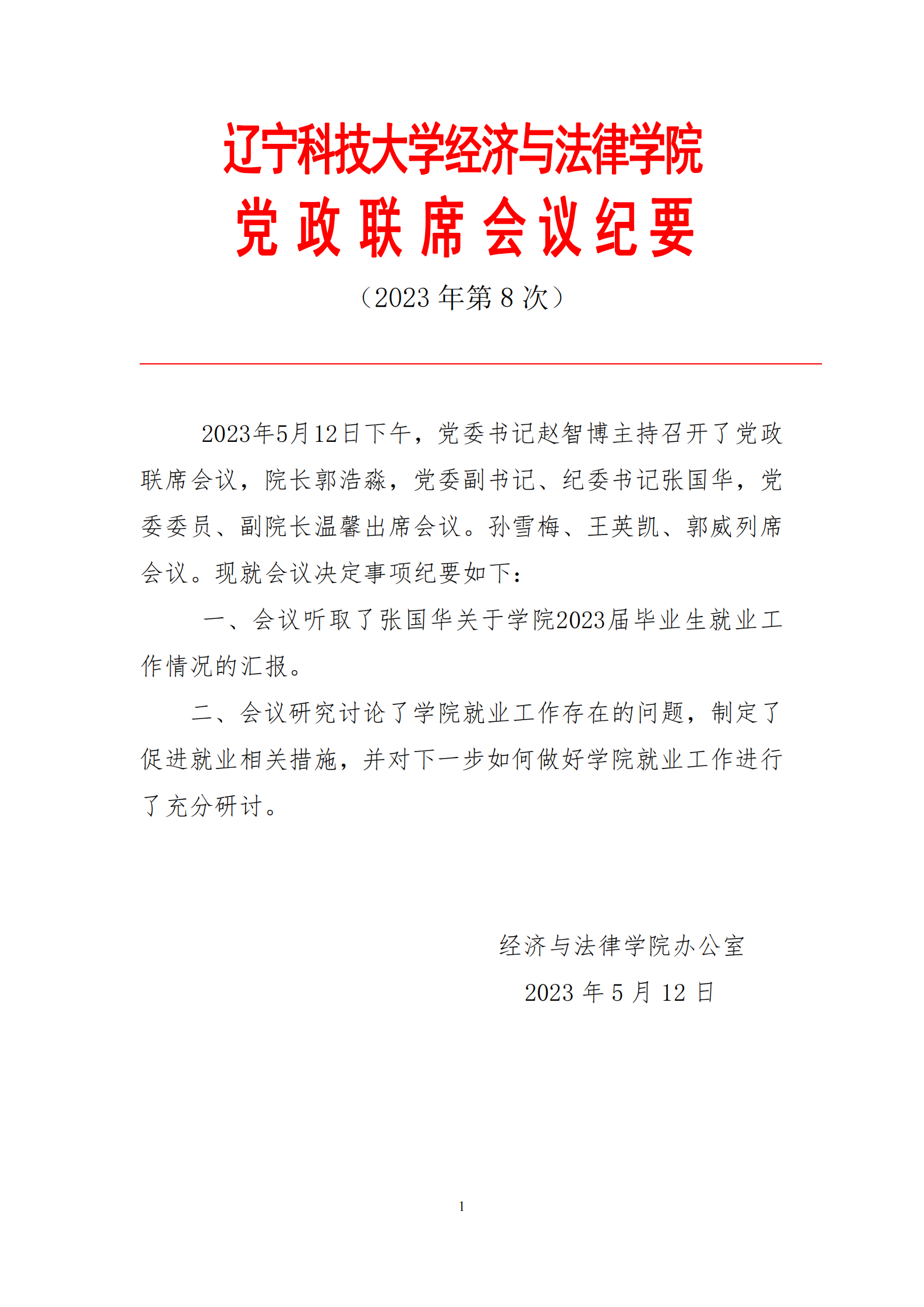 荣耀体育app最新版下载经济与法律学院党政联席会会议纪要(2023年第8次)