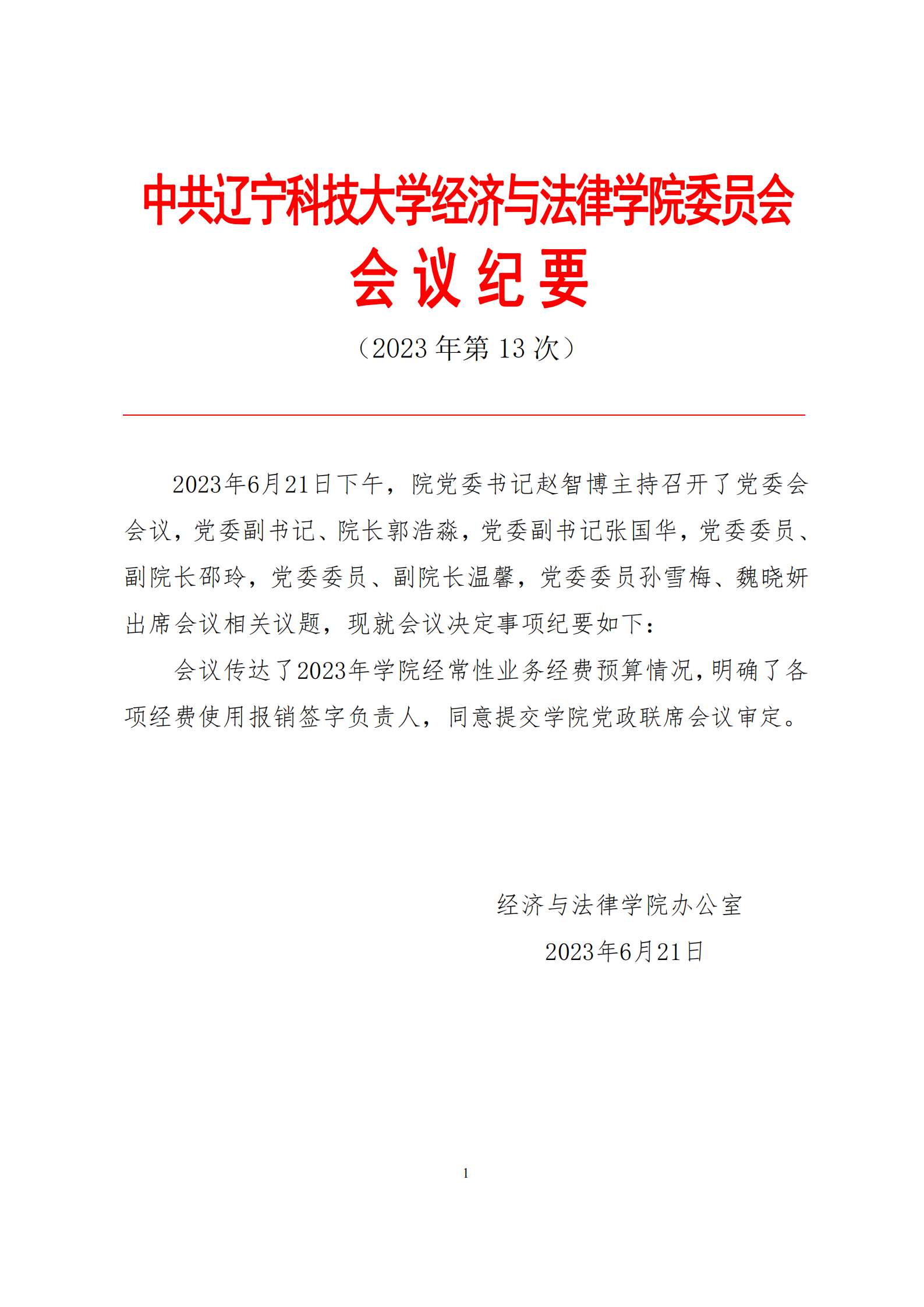 中共荣耀体育app最新版下载经济与法律学院委员会会议纪要(2023年第13次)