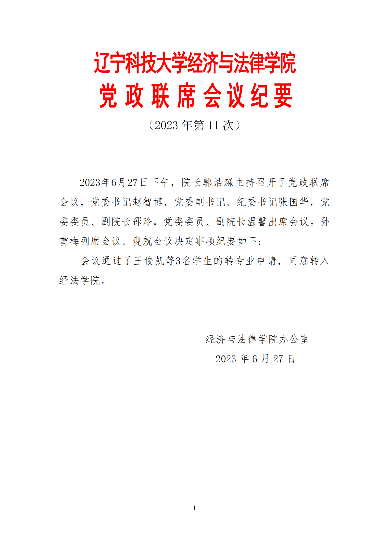 荣耀体育app最新版下载经济与法律学院党政联席会会议纪要(2023年第11次)