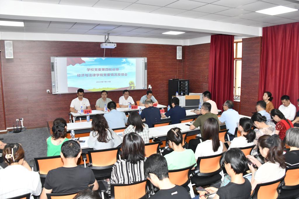7月13日上午,经法学院在博识楼A407召开“学校党委第四轮巡察经济与法律学院党委情况反馈会”。会议由经法学院院长郭浩淼主持,校党委常委、纪委书记、监察专员宋明凯,校纪委副书记、综合监察室主任、审查调查室主任金福尧,校党委第二巡察组组长陈功庆及校党委巡察办和第二巡察组的工作人员出席会议,经法学院全体教师及学生代表参加会议。
