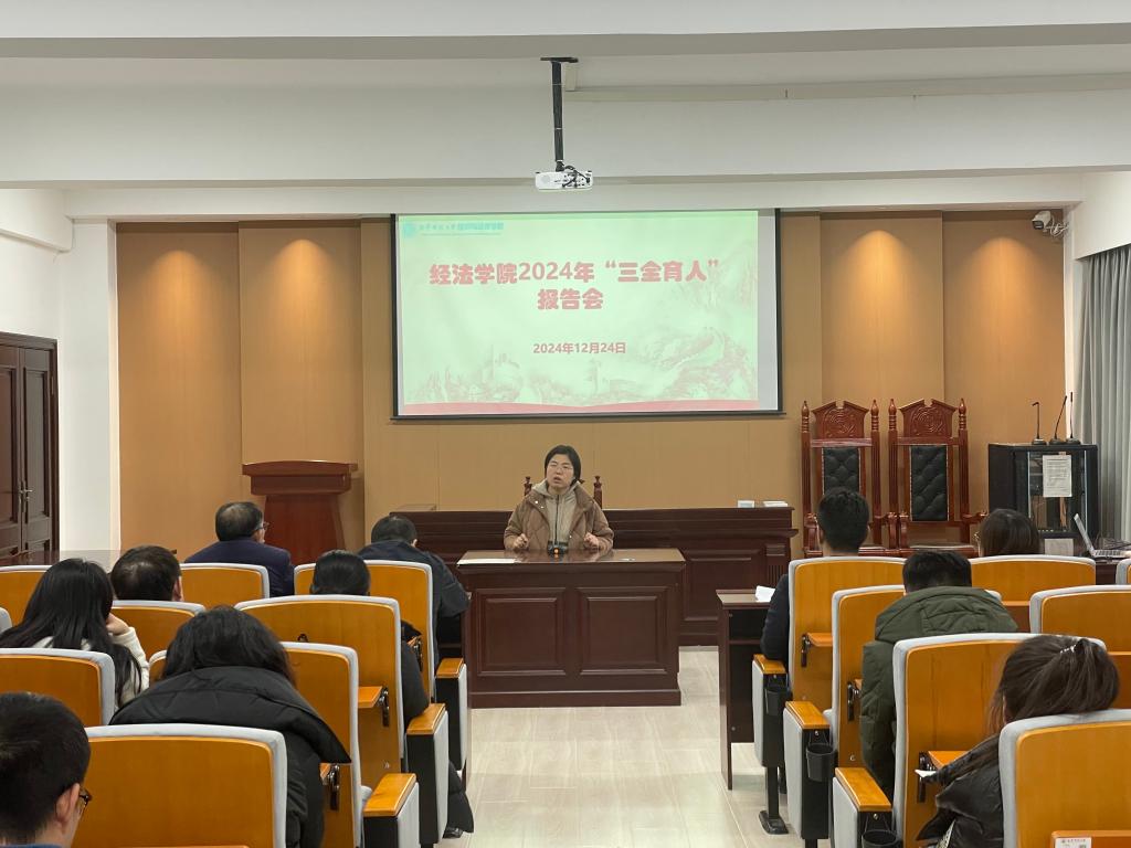 12月24日,经法学院在博识楼A402召开“三全育人”报告会。会议由学院党委书记赵智博主持,全体教工参加了会议。