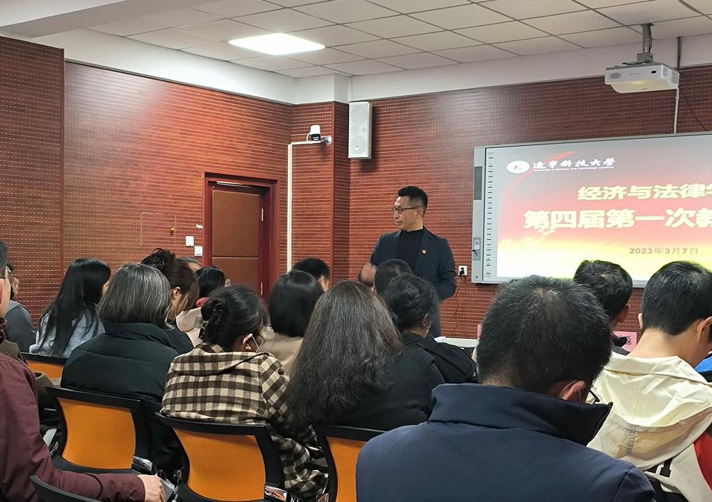 2023年3月7日下午,经济与法律学院在5号楼A407会议室召开第四届第一次教职工暨工会会员大会。会议由院工会主席刘振竚主持,全院教职工出席,校工会主席鲁焱应邀列席。