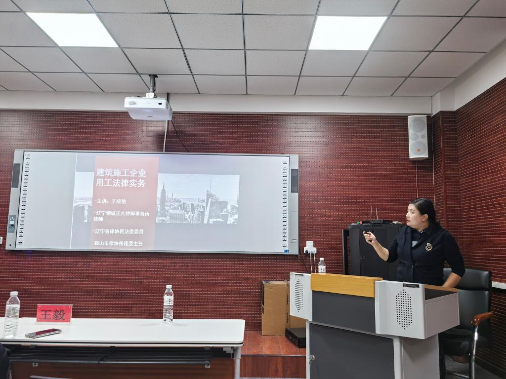 11月19日,经法学院邀请鞍山市律师协会房地产与建设工程委员会主任于晓艳和秘书长王毅出席法硕专业建设工程法律实务讲座,并作题为“建筑施工企业用工常见问题法律实务分析”和“建设施工合同无效的认定及其法律后果”的讲座。本次讲座由学院法律硕士中心主任武婷婷主持,学院副院长邵玲、相关法硕教师及2023级全体研究生到场聆听。