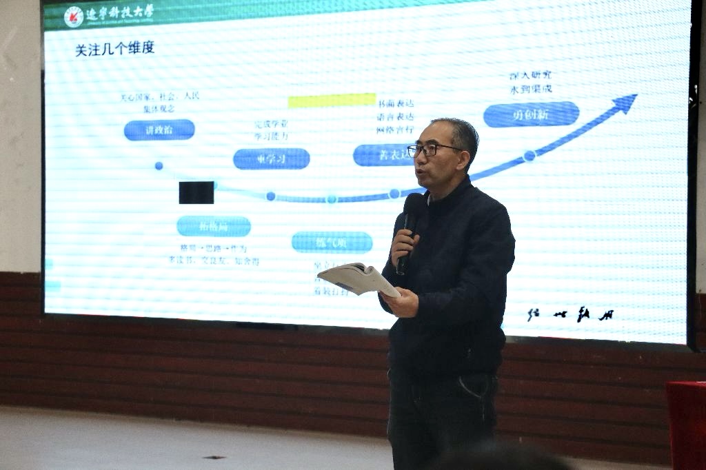 11月20日,经法学院邀请校党委学生工作部(处)部(处)长纪振廷于明德楼大学生活动中心,为2024级本科生做题为“志存高远,脚踏实地,努力成为更好的自己”主题讲座。本次讲座由经法学院党委副书记张国华主持,学院学办主任齐艳萍、团委副书记张鹏飞、班主任代表李俊及2024级全体本科生参加。