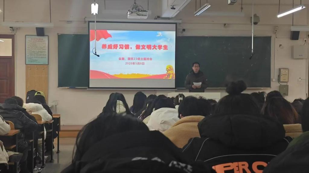 安全无小事,在“寝室防火安全警示”主题班会中,辅导员详细讲解了寝室防火安全的重点注意事项以及违反规定可能引发的严重后果,传达相关法律法规和校纪校规,切实增强学生的安全与纪律意识。在“文明行为规范”主题教育中,辅导员强调严禁在教学楼、图书馆等场所吸烟,引导学生树立正确恋爱观,遵守课堂纪律,杜绝将早餐带入教学楼等不文明行为。