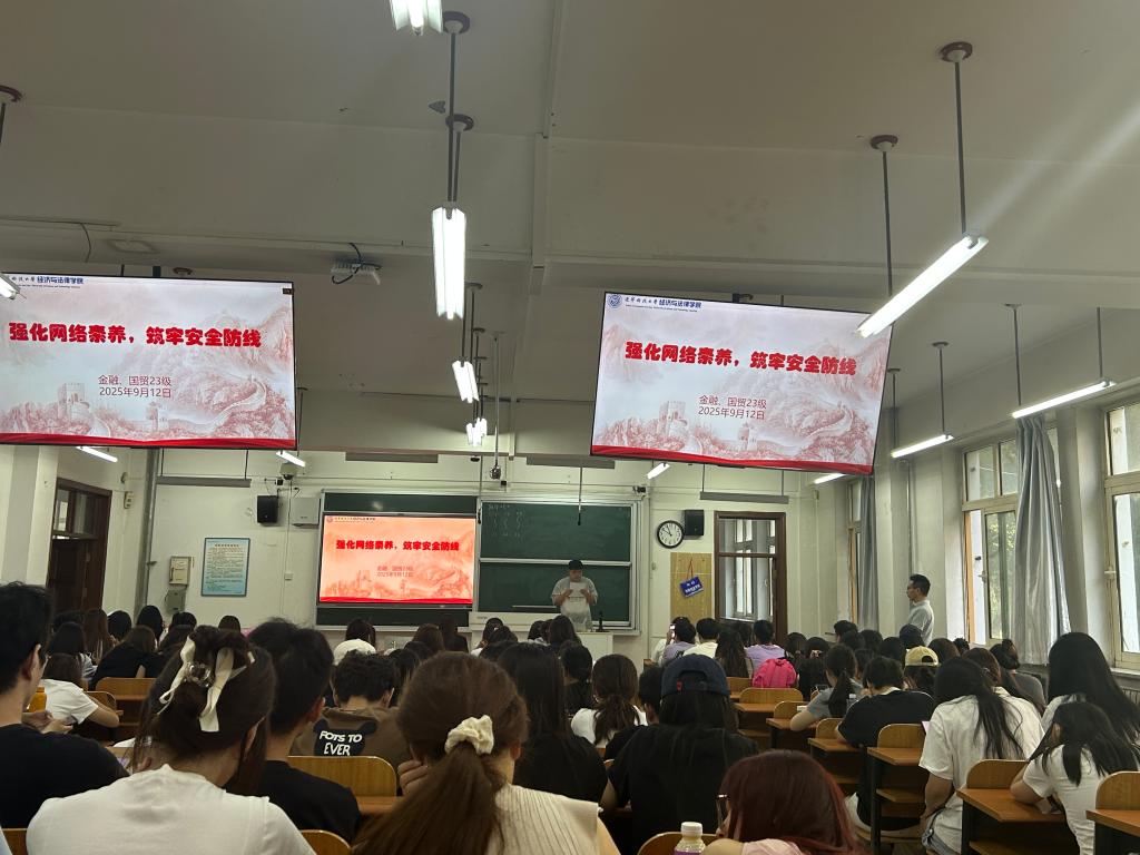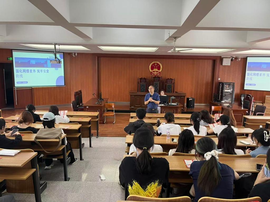 在“强化网络素养,筑牢安全防线”主题班会上,辅导员组织学生系统学习了《网络安全法》等相关法律法规,并围绕网络诈骗防范、个人信息保护等重点内容开展深入讲解,旨在帮助学生增强网络安全意识、提升网络素养,共同营造风清气正、积极向上的网络育人环境。