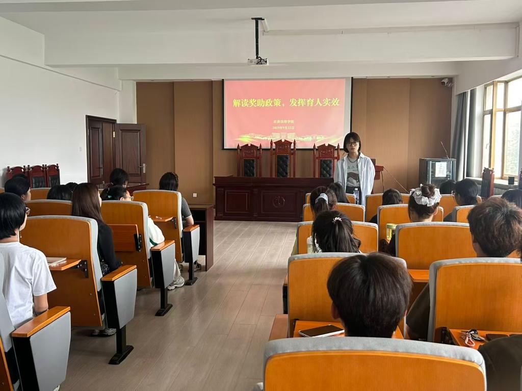 在“解读奖助政策,发挥育人实效”主题班会上,辅导员通过PPT演示与政策文件解读的形式,系统讲解国家及学校各类奖助政策,详细说明评选条件、申请流程与评审要求,确保每位学生都能准确理解政策细节。辅导员鼓励符合条件的学生积极申报,强调要充分发挥奖助政策的激励与保障作用,营造积极向上、争先创优的校园氛围。