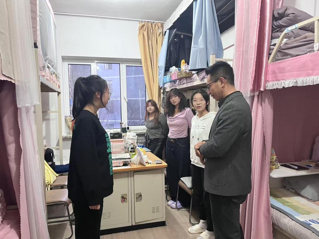 11月22日,学院党委书记赵智博、党委副书记张国华、团委副书记张鹏飞及研究生辅导员贺伟,带领学院自管会和研究生会成员深入学生寝室开展安全隐患大排查工作。