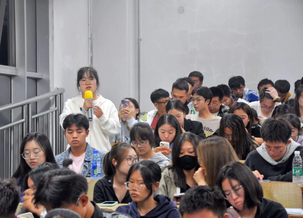 辩论表演赛后,2023级同学们积极参与到辩题讨论中,大家踊跃发言,纷纷阐述自己的观点和看法。经法学院辩论队副队长郭聪皓鼓励现场2023级同学积极加入到经法辩论队中来,他表示,在辩论队不仅可以提升口才,更是一次成长和锻炼自我的绝佳机会。同学们积极参与,现场共有80余名同学加入辩论队新生群聊。