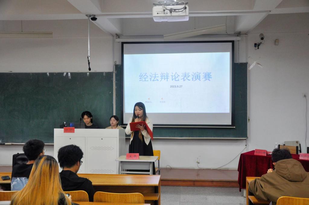 为提高同学们的思辨能力与表达能力,9月27日晚,经法学院于明德楼A112举办辩论表演赛,本次辩论赛由经法学院辩论队队长韩雨彤主持,学院2023级全体同学参加了此次活动。