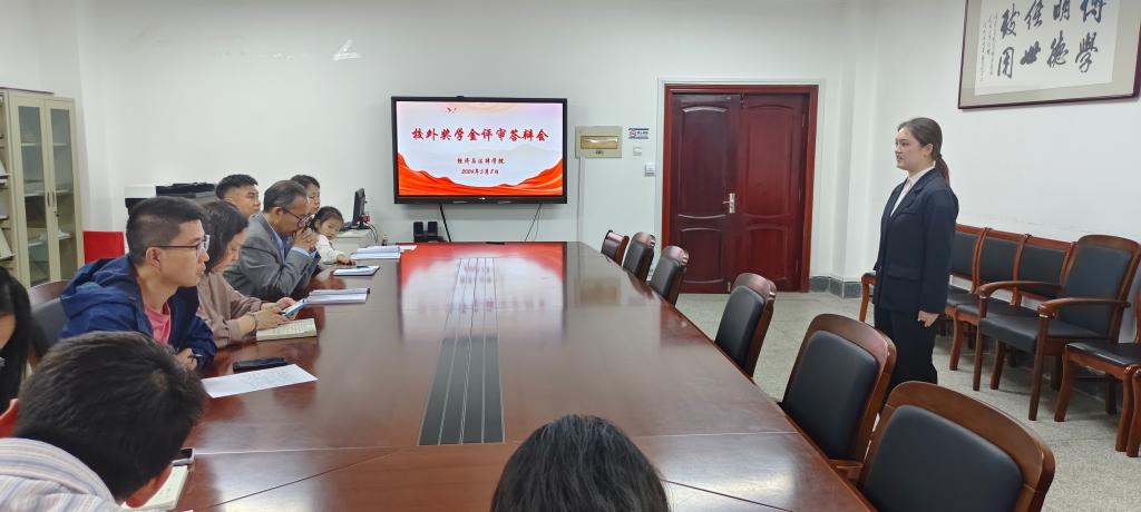 为更好地激励同学们积极进取、奋发向上,树立学生榜样,5月8日下午,经法学院在博识楼A305召开校外奖学金评审答辩会。经法学院党委副书记张国华、学办主任齐艳萍、团委副书记张鹏飞、教师代表魏晓妍、班主任代表李俊及学院学生会主席团成员组成奖学金评审小组,经过层层筛选,共计16名候选人参与答辩。