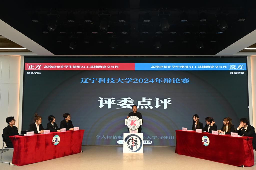 辩论过程中,双方辩手以“高校应允许/禁止学生使用AI工具辅助论文写作”为辩题,我方一辩选手以具体实例和相关领域的专业研究结果为依据,通过分析学生使用AI工具辅助论文写作所带来的一系列弊端有力地阐明了“高校应禁止学生使用AI工具辅助论文写作”的己方观点。同时,我院辩手针对对方论述中出现的漏洞展开反击,现场气氛热烈,火花四溅。小结环节,我方辩手在总结己方观点的同时结合现场情况,以更深层次的解析将整场辩论推向高潮,准确而有力的展现了我方观点。最终,经过评委们的严谨评审,经法学院辩论队斩获了荣耀体育app最新版下载大学生辩论赛的冠军!