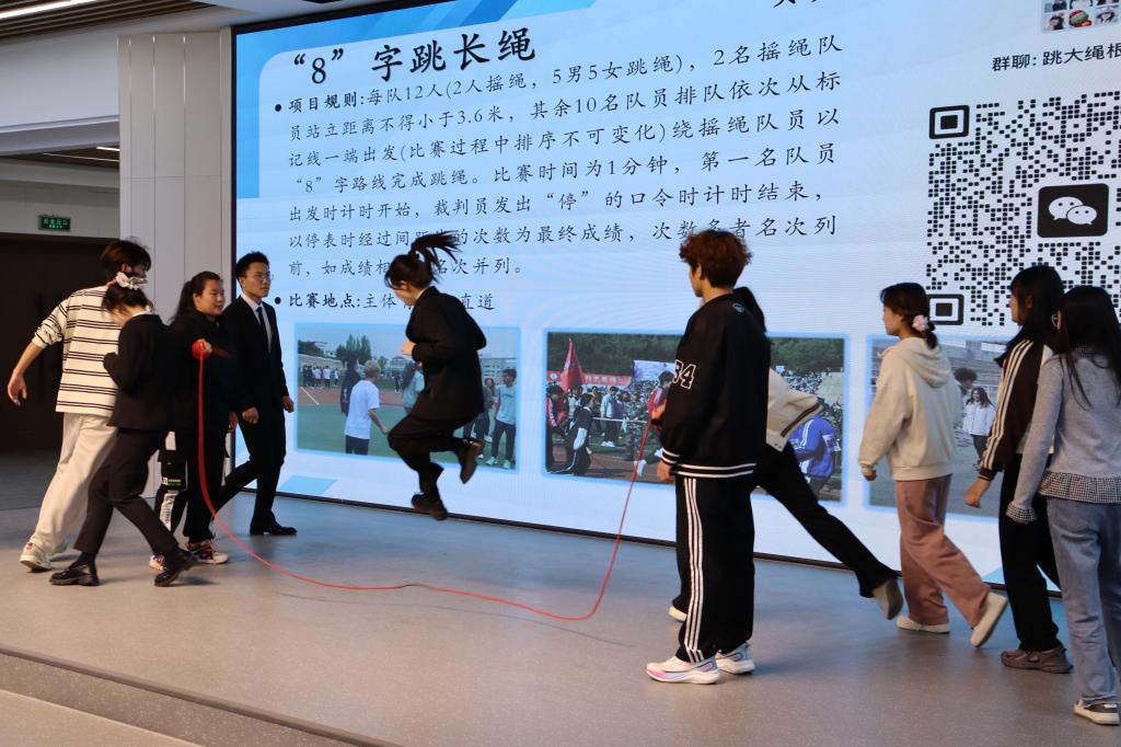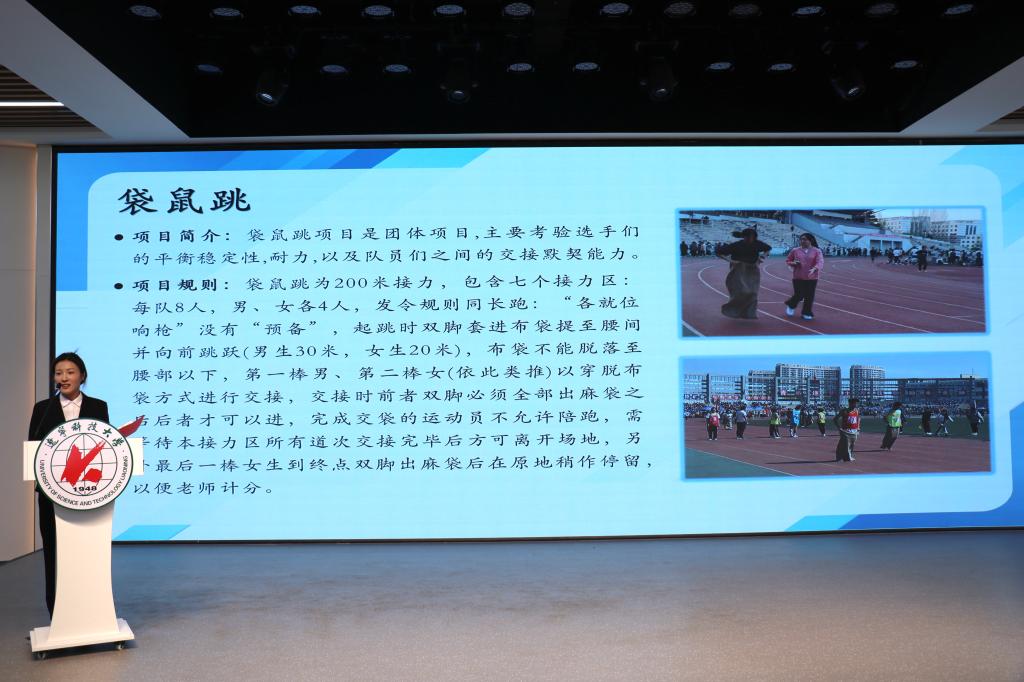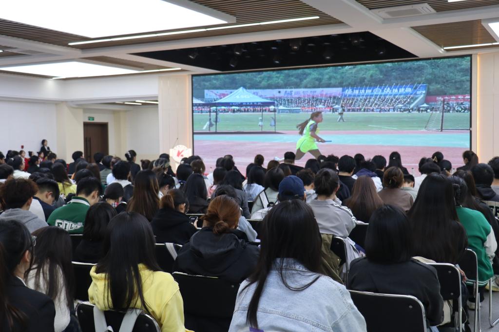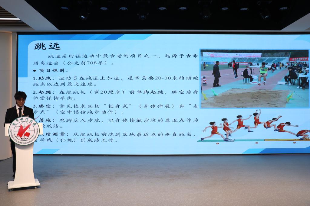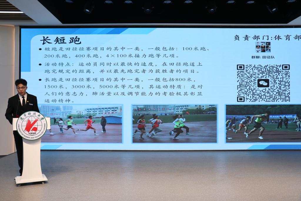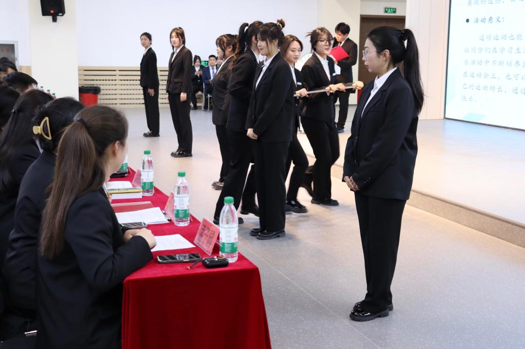 在张鹏飞的带领下,现场师生共同观看了经法学院在第52届运动会中精彩表现的视频,运动员们矫健的身姿和拼搏的身影,点燃了与会同学心中的激情。重温高光时刻,同学们深刻感受到体育的魅力和力量。国贸24-2班体育委员赵书白作为运动员代表发言,他表示,经法学院全体运动员在今后的训练中,定会团结一致、认真刻苦;发扬“更高,更快,更强”精神,在赛场上遵守规则、拼搏奋进;用实际行动诠释对体育的热爱,为经法学院的体育事业添砖加瓦,争取不负众望,再创佳绩。随后,运动会各项目负责人依次登台,从项目内容、竞赛规则、运动技巧及注意事项等多方面进行详细介绍,并通过观看视频以及现场演示的方式生动地展现了各项目的运动要领,让同学们对运动会项目有了更直观的了解,极大地激发了同学们的参与热情。