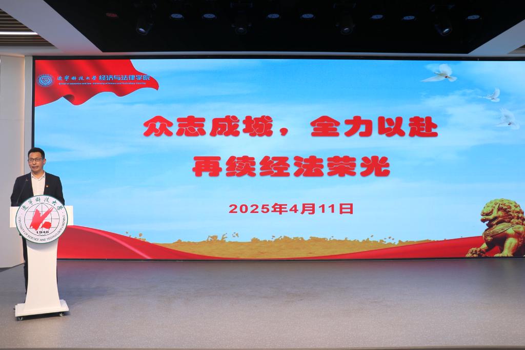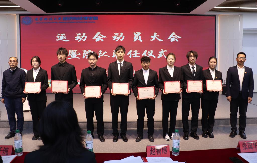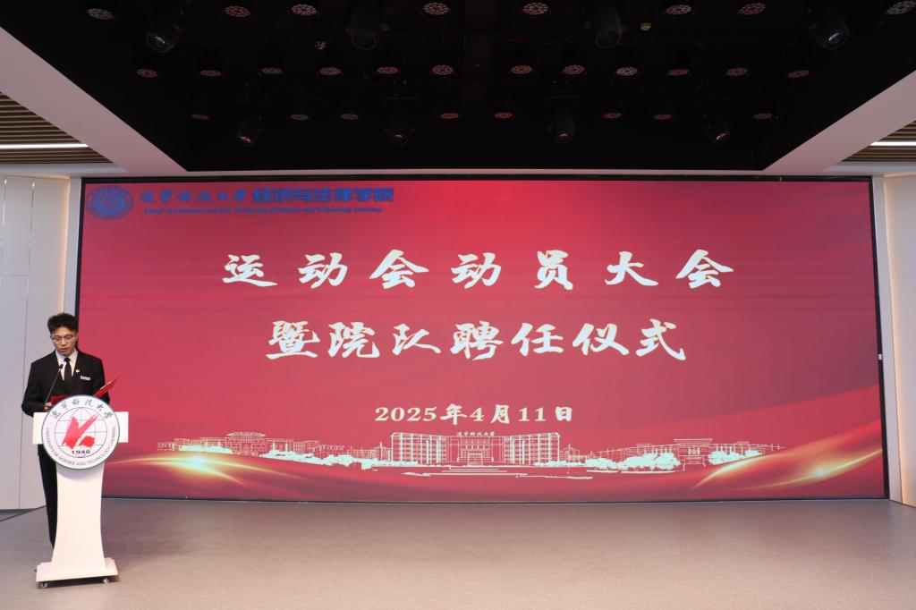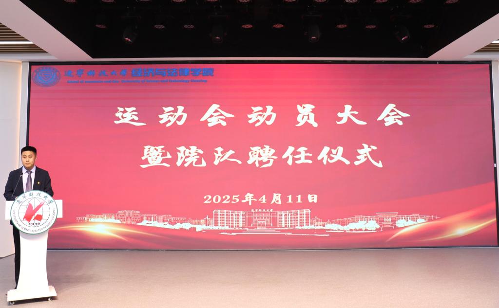 4月11日,经法学院于明德楼大学生活动中心召开第53届校运动会动员大会暨院队聘任仪式。本次大会由学院团委副书记张鹏飞主持,学院党委书记赵智博、党委副书记张国华、学办主任齐艳萍出席,学院各院队正、副队长、全体团学骨干以及2024级全体学生共计300余人参加会议。