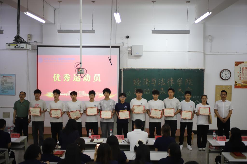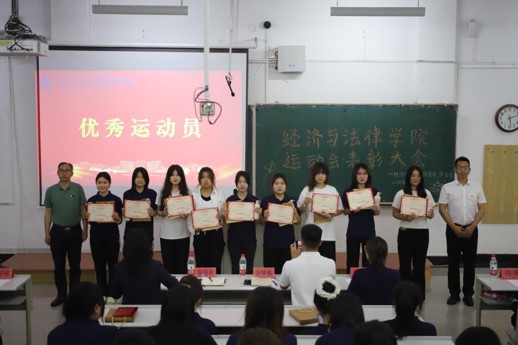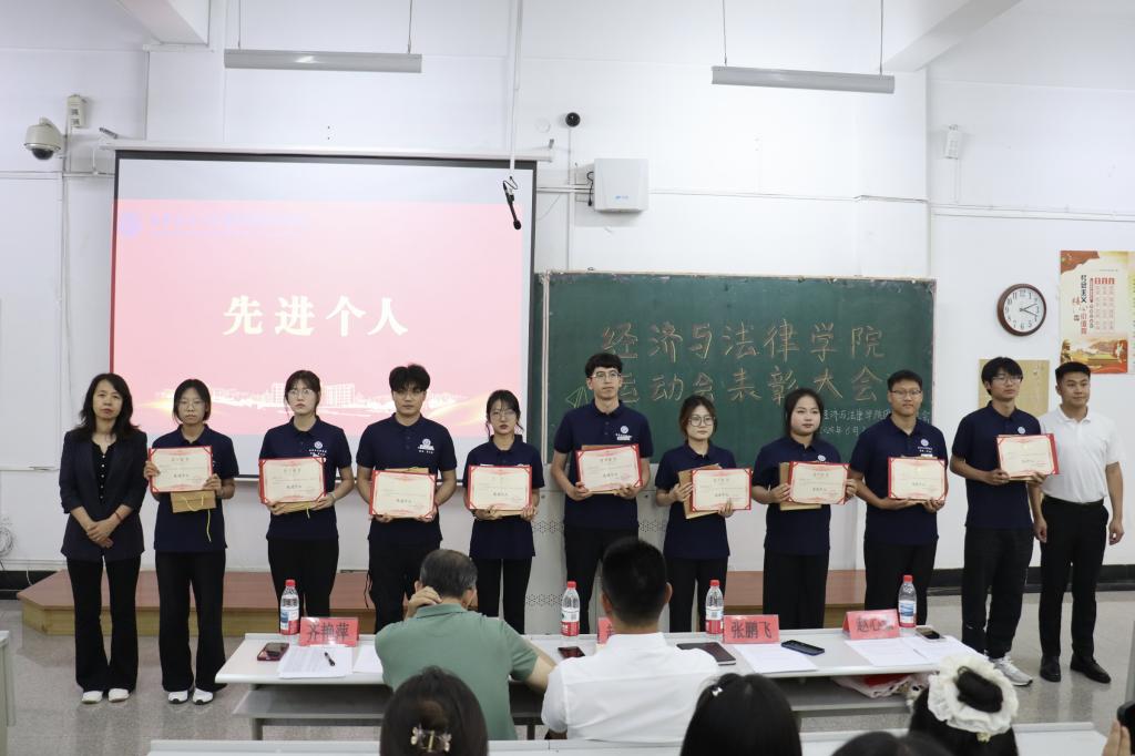 会议伊始,全体与会人员共同奏唱国歌。通过一段精心制作的视频,大家共同回顾经法运动健儿在第五十三届运动会中的卓越表现。随后,团委副书记张鹏飞宣读学院体育道德风尚奖、志愿服务突出贡献奖、先进个人及优秀运动员的获奖名单。团委学生副书记邱千纯、刘帅家为5个班级颁发体育道德风尚奖;学生会执行主席赵心豪、体育部负责人李佳澳为12名优秀志愿者颁发荣誉证书;学办主任齐艳萍、团委副书记张鹏飞为21名运动会工作人员授予先进个人奖;党委书记赵智博、党委副书记张国华为79名优秀运动员颁发荣誉证书。最后,获奖学生与老师合影留念,掌声雷动。