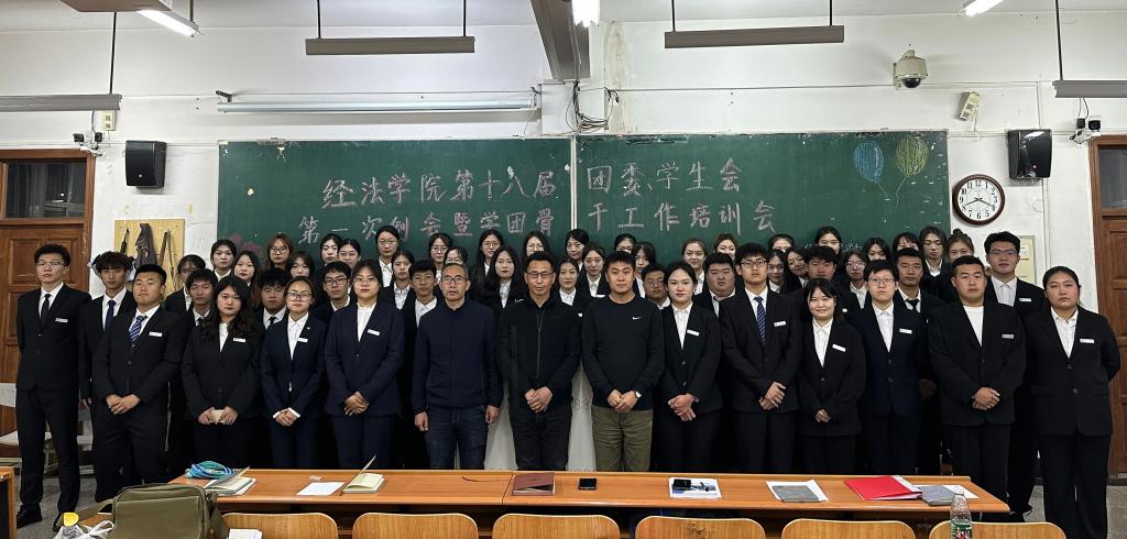 10月23日下午,经法学院第十八届团委、学生会第一次例会暨学团骨干工作培训会在博学楼C112举行。学院党委书记赵智博、党委副书记张国华、团委副书记张鹏飞出席会议,经法学院学生会全体学团骨干参加了本次会议。会议由经法学院第十八届学生会执行主席兼办公室负责人吴雨纯主持。