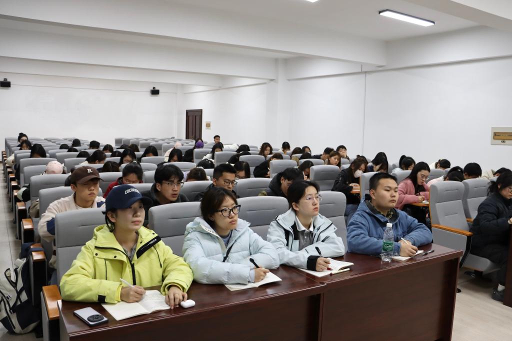 近日,经法学院于博识楼A402开展“青年·说”大学生理论宣讲。此次宣讲由学院“青年·说”大学生理论宣讲团成员、学生会执行主席兼办公室负责人赵心豪担任主讲人,共计94名团员及入团积极分子参加了宣讲会。
