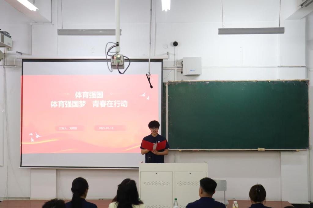 宣讲会上,刘帅家以“体育强国梦,青春在行动”为主题,从我国体育强国建设战略、体育事业发展、体育竞技与青年使命四个维度展开系统阐述,带领同学们回望我国体育强国建设的历程,深度解读其时代内涵,引导学生深刻认识到体育事业在民族复兴进程中的重要意义。他指出,当代青年不仅是体育强国建设的见证者,更是参与者和推动者,大学生作为新时代发展的中坚力量,应积极投身于体育强国建设中,在运动中强健体魄、在参与中凝聚力量,以青春之力为体育强国建设注入蓬勃动力。