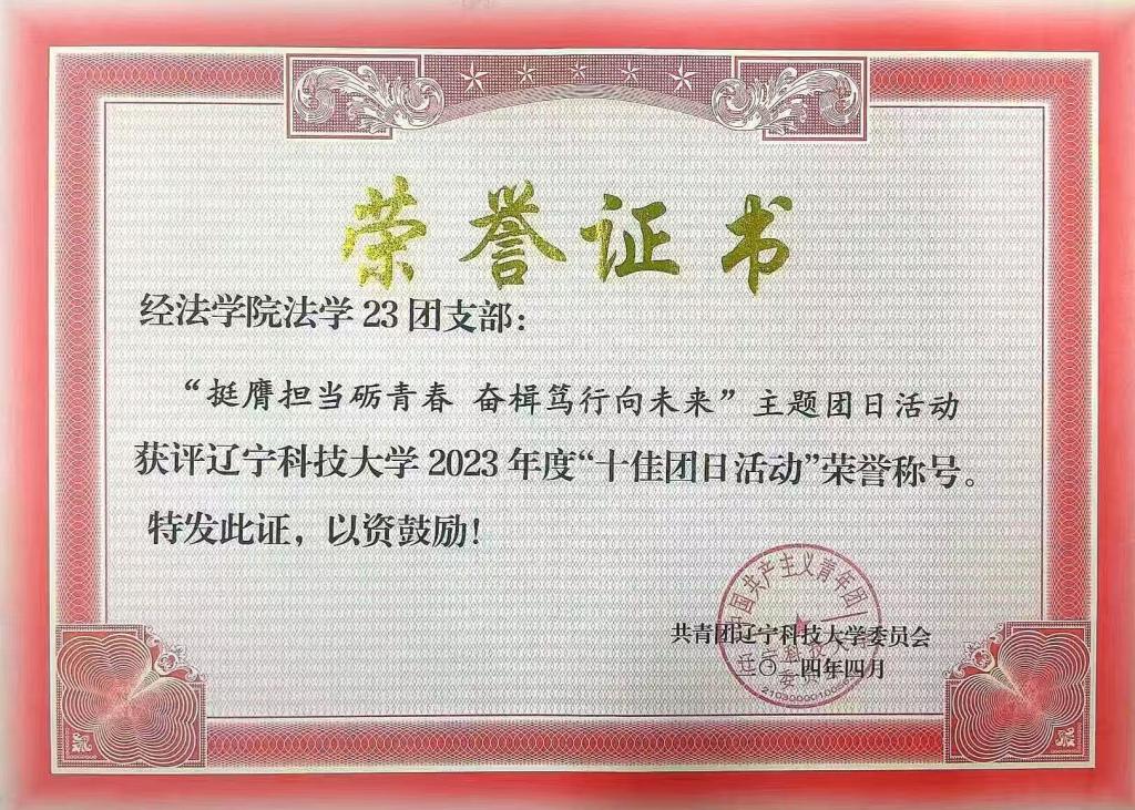 在社会实践和志愿服务方面,他一直以“有为、担当”为工作主旨,以“志愿服务”为工作抓手,带领大家将理论与实践紧密结合。他积极参与学院“小红帽”志愿服务活动,带领团员青年、法律协会成员定期深入南华街道化北社区、红岭街道中港花园社区、鞍山市“梦想之家”等地开展普法宣传活动,为社区居民在法律问题上答疑解惑,服务覆盖3000余人次。作为法律协会负责人,他多次组织参与模拟法庭系列活动。支部团员青年也在他的号召下,积极参与“返家乡”、扬帆计划、把我的大学带回母校、暑期“三下乡”等社会实践活动,真正做到了“实践育人成果好”。法学23班同时荣获荣耀体育app最新版下载2024年度“学雷锋志愿服务先进集体”。