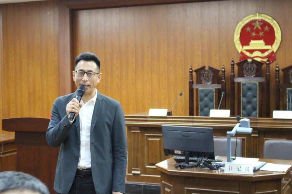 赵智博作总结讲话。他表示,本次模拟庭审活动是对大学生法治教育工作的进一步深化与落实,希望同学们在日后的学习与生活中能够增强法律意识,遵法、学法、守法、用法,争做新时代法治青年。