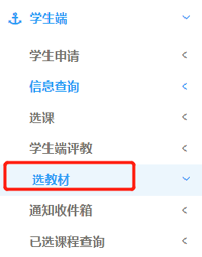 2.登录后进入“学生端”—“选教材”界面即可进行预订教材操作。