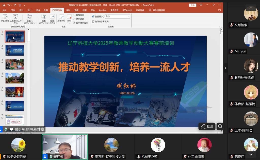 3月26日,荣耀体育app最新版下载教务处教师教学发展中心组织开展2025年教师教学创新大赛赛前培训活动,邀请学校材料与冶金学院李万明教授、西南科技大学臧红彬教授,通过线上、线下方式,分别从不同角度为学校教师进行培训,60余名教师报名参加。