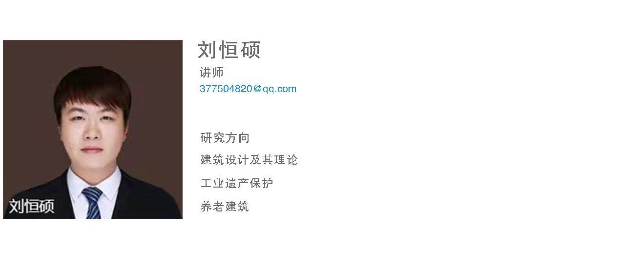刘恒硕,助教,双硕士,分别获得沈阳建筑大学建筑学硕士学位和德国维斯马应用技术大学文学硕士学位。