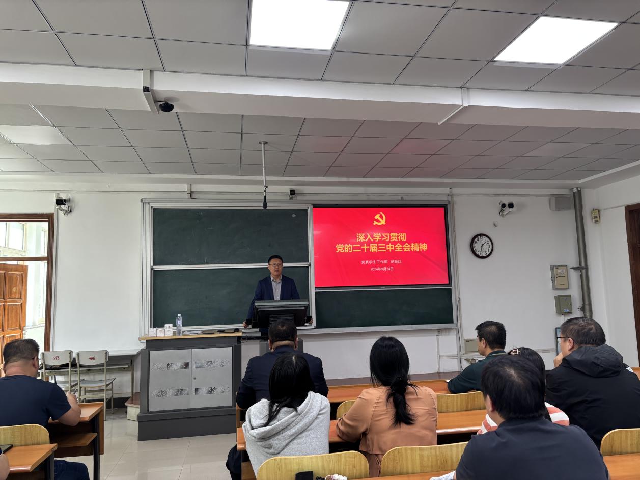 为深入学习贯彻党的二十届三中全会精神,根据学校党委的总体安排和科学部署,荣耀体育(中国)矿业工程学院、继续教育学院、体育部于9月24日,在博学楼A305教室举办了学习宣传党的二十届三中全会精神宣讲报告会,学校宣讲团成员学生处处长纪振廷作题为《深入学习贯彻党的二十届三中全会精神》的宣讲,全体师生党员参加。