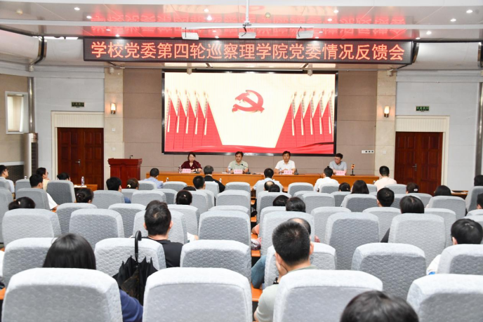 7月14日,荣耀体育app最新版下载党委巡察工作领导小组在图书馆报告厅召开第四轮巡察理学院党委情况反馈会议。校党委常委、纪委书记、监察专员宋明凯同志,党委第一巡察组组长王会立同志,党委巡察督查办公室副主任陈振源同志,党委第一巡察组副组长王洁同志,巡察督查办公室和党委第一巡察组全体成员,理学院的领导班子,全体教职工及部分学生代表参会。会议由理学院党委副书记屠良平主持。