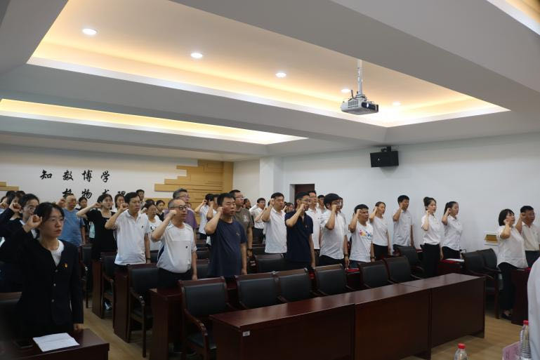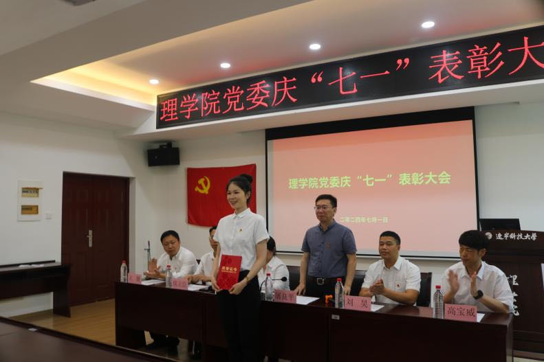 7月1日,荣耀体育app最新版下载理学院党委召开庆“七一”表彰大会,在中国共产党成立103周年即将来临之际,进一步营造见贤思齐、崇德向善的浓厚氛围,为学校高质量内涵式发展汇聚最磅礴的力量。理学院院长屠良平主持会议,理学院党委副书记、纪委书记侯立臣宣读表彰名单,党委委员、副院长刘昊带领理学院全体师生党员重温入党誓词,学院全体师生党员参会。