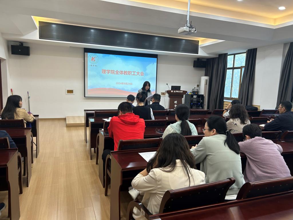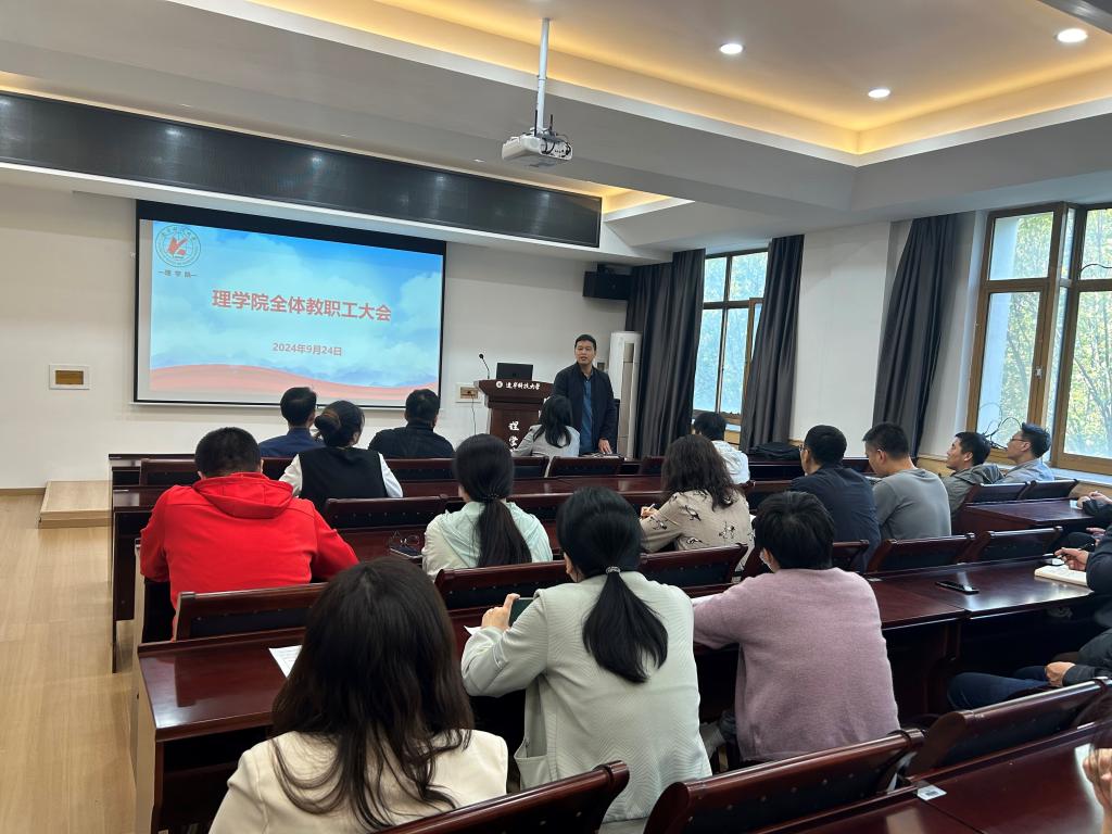 2024年9月24日,荣耀体育app最新版下载理学院在明贤楼B315会议室召开了全院教职工大会。会议由理学院党委书记张春霞主持,全院教职工参加会议。