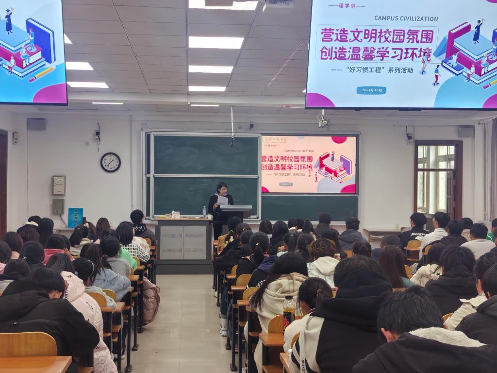 “营造文明校园氛围,创造温馨学习环境”班会持续推进“好习惯工程”,强化学生日常行为规范,倡导遵守课堂纪律,营造积极向上的学习氛围,让文明之风遍吹校园每个角落。