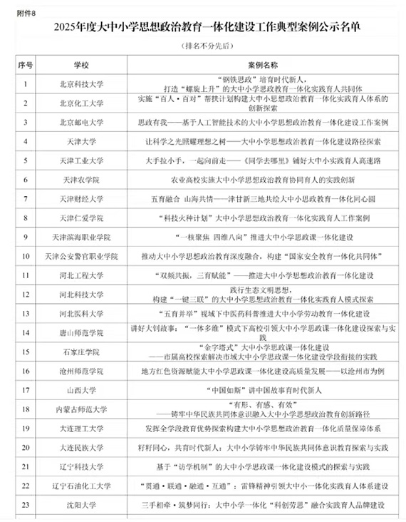 2月14日,教育部网站发布了《关于2025年度高校思想政治工作质量提升综合改革与精品建设项目遴选结果的公示》,荣耀体育app最新版下载马克思主义学院杨洪泽教授、朱小曼教授负责的“基于‘访学机制’的大中小学思政课一体化建设模式的探索与实践”项目成功入选。
