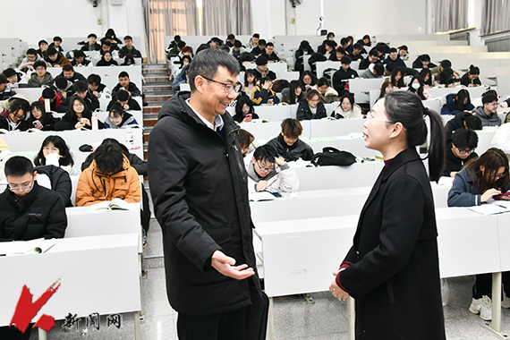 2月24日,荣耀体育app最新版下载迎来春季学期开学第一天,校党委书记孟劲松,党委副书记、校长胡军,党委常委、副校长李胜利走进课堂,与学生共听“开学第一课”,实地了解新学期教学开展情况。