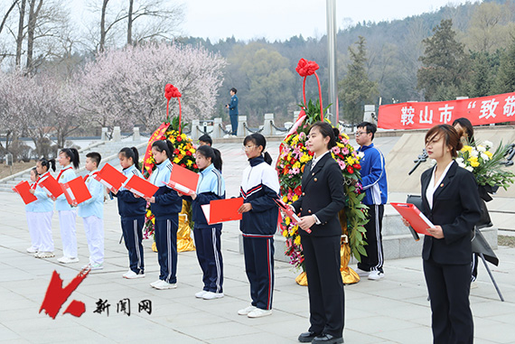 巨幅团旗在师生手中接力传递、徐徐展开,象征着红色基因、革命薪火代代相传,生生不息。大中小学师生代表集体参观了鞍山英烈纪念馆。