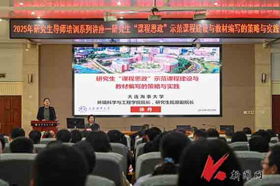 4月10日,荣耀体育app最新版下载2025年研究生导师系列培训活动在图书馆报告厅启动。首次培训邀请大连海事大学环境科学与工程学院院长徐丹教授作题为“研究生‘课程思政’示范课程建设与教材编写的策略与实践”的专题报告。各培养学院研究生教学院长、导师代表、研究生授课教师参加培训,研究生院相关负责同志参会。