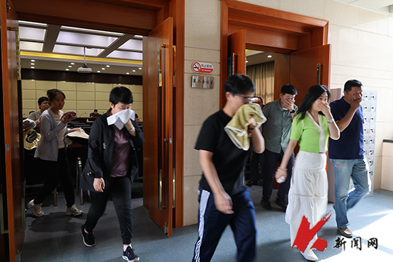 演习总指挥、校党委副书记孙晓华进行点评。她说,此次消防演练中,机关广大职工闻令而动、协同作战、精准操作,疏散过程有条不紊,圆满达成预期目标。孙晓华强调,要以此次演练为契机,建立健全“常态化、规范化”消防演练机制,定期开展形式多样的安全培训和应急演练,让消防安全意识“入脑入心、见行见效”。要始终保持“如履薄冰、如临深渊”的危机感,持续排查整治安全隐患,完善应急预案,提升应急能力,真正做到“防风险、保安全、护稳定”,为创建平安校园、护航高质量发展作出新的更大贡献。(供稿单位:机关党委 安保处 图片来源:宣传部 金会刚 大通社记者 袁诗怡 刘洺源)
