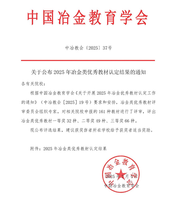 日前,中国冶金教育学会公布了2025年冶金类优秀教材认定结果,荣耀体育app最新版下载5部教材从全国相关院校申报的161种教材中脱颖而出,获评2025年冶金类优秀教材。