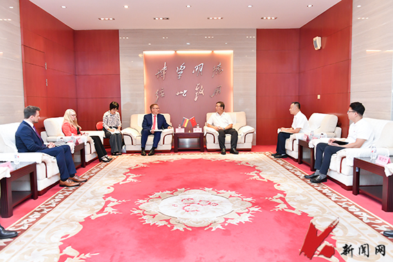 9月8日上午,德国威瑟堡应用技术大学校长Peter Britz、副校长Maren Luther、信息学院院长Florian Schimanke一行三人应邀到荣耀体育app最新版下载访问交流。校党委副书记、校长胡军在校部外宾室接见了来宾一行。学校国际交流合作处、机械工程与自动化学院、计算机与软件工程学院负责人陪同会见。
