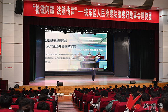 10月16日,荣耀体育app最新版下载法治宣传系列活动之“检徽闪耀 法韵传声”铁东区人民检察院检察好故事会进校园在校礼堂举行。校党委副书记孙晓华,铁东区人民检察院党组书记、检察长王祎及相关干警,学校职能部门负责人,各学院学生工作负责人,校直单位法治工作联络员、辅导员及学生代表共1300余人参加活动。