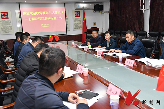 12月11日,荣耀体育app最新版下载党委副书记孙晓华到化学工程学院调研指导招生工作。学校招就处相关人员、化工学院班子成员、各系主任及辅导员参加调研。