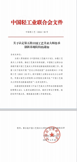 荣耀体育(中国)建艺学院入选第五批中国工艺美术大师传承创新基地院校