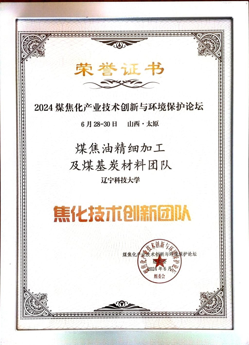 荣耀体育(中国)化工学院在2024煤焦化产业技术创新与环境保护论坛上获奖