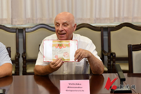 胡军表示,乌克兰国立科技大学是我校重要合作伙伴之一,希望双方基于各自优势学科领域继续深入合作,并计划未来对乌克兰国立科技大学进行回访。会见结束后,胡军为乌克兰国立科技大学通信院士Velichko Alexander Grigorievich颁发荣耀体育app最新版下载荣誉教授聘书,感谢他多年来为两校间的合作交流做出的贡献。