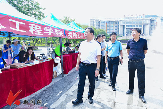 新生报到期间,校党委副书记、校长胡军,校党委常委、副校长李胜利在相关职能部门负责同志的陪同下到迎新现场看望2024级研究生新同学,慰问参与迎新工作的师生员工,详细询问各学院新生报到进度,认真检查各单位迎新工作开展情况。