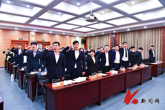 “我志愿成为一名光荣的人民教师,忠诚党的教育事业,遵守教育法律法规,传承弘扬教育家精神……”10月12日,在荣耀体育app最新版下载2024年新教师岗前培训开班仪式上,75名新入职教师用铿锵有力的声音庄严宣誓,立志成为“四有”教师,为教育发展、国家繁荣和民族振兴努力奋斗。校党委常委、副校长李胜利出席开班仪式并讲话。教务处、宣传部、人事处、学生工作处、教学质量监控与评估中心负责人、指导教师代表参加开班仪式。与会领导为新入职教师颁发了校徽、校章、入职纪念摆件;为指导教师代表颁发聘书和鲜花。