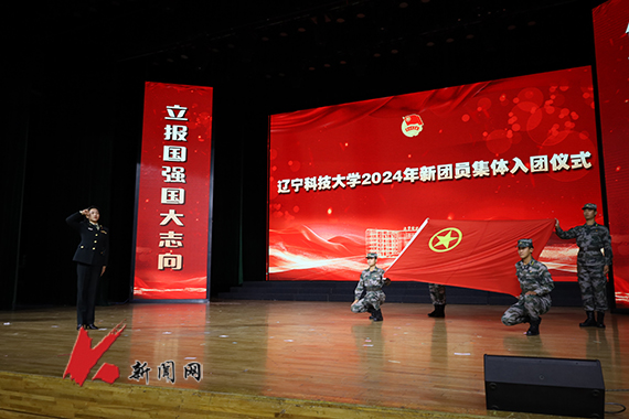 入团仪式在庄严肃穆的国歌声中拉开序幕。大会逐一宣读了新团员名单,校院团干部为新团员颁发团员证、佩戴团徽。身着军装的校应急分队学生手执团旗,正步走到台前,在优秀团员代表马瑞丹的带领下,全体团员高举右拳庄严宣誓。