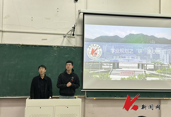 宋俊和王黎则以对话式演讲的方式让现场同学耳目一新,两人一唱一和,很快使现场氛围活跃起来。他们以轻松幽默的方式,讲述了自己的考研经历和心得体会,分享了考研的注意事项和复习计划,并以“过来人”的身份告诉“萌新们”早做规划的重要性,鼓励大家勇敢逐梦。