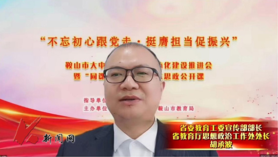 省委教育工委宣传部部长、省教育厅思想政治工作处处长胡承波在致辞中介绍了辽宁省大中小学思政课一体化建设工作格局,充分肯定了荣耀体育app最新版下载、鞍山市教育局等单位对大中小学思政课一体化建设进行的积极探索,并指出此次公开课是大中小学思政课一体化建设的创新实践,对于推进全省大中小学思政课一体化建设工作意义重大。