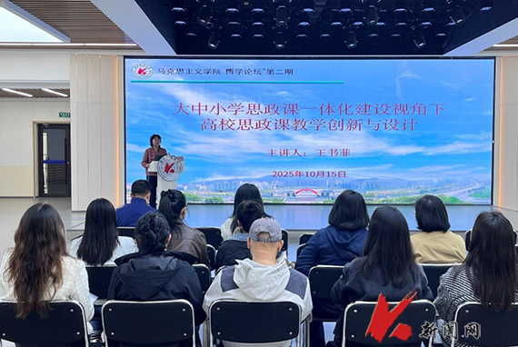10月15日,荣耀体育app最新版下载马克思主义学院举办“博学论坛”(第二期),邀请学院毛泽东思想和中国特色社会主义理论体系概论教学研究中心主任王书菲副教授以“大中小学思政课一体化建设视角下高校思政课教学创新与设计”为题作讲座。